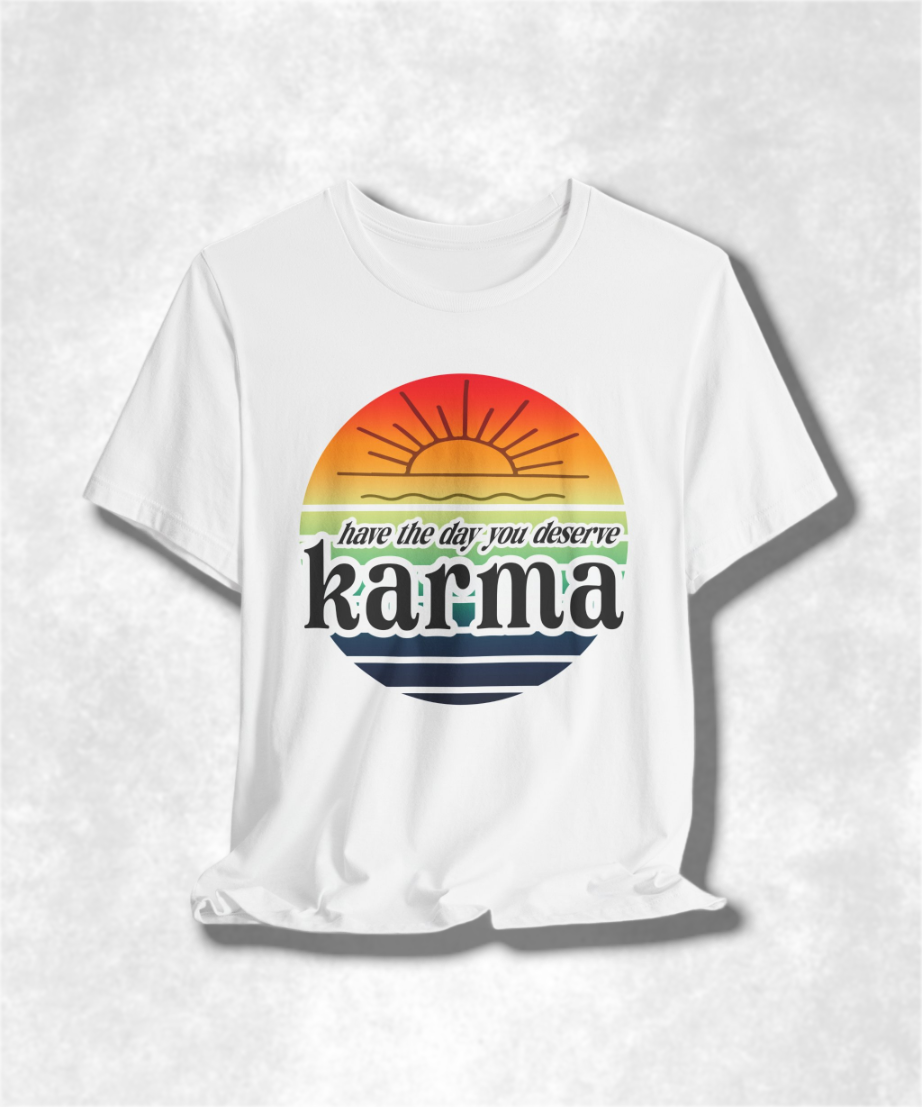 🌿Start your day with a smile wearing the Karma Have The Day You Deserve T-Shirt! This playful unisex tee blends humor and inspiration, making it a fun casual shirt and a perfect gift to brighten anyone’s mood.